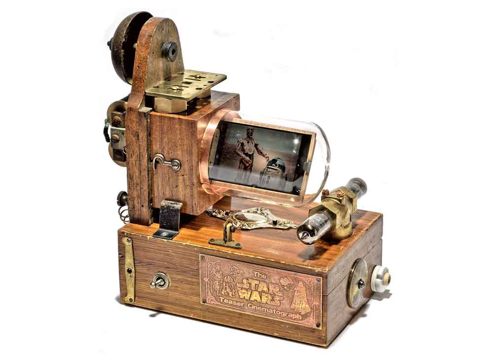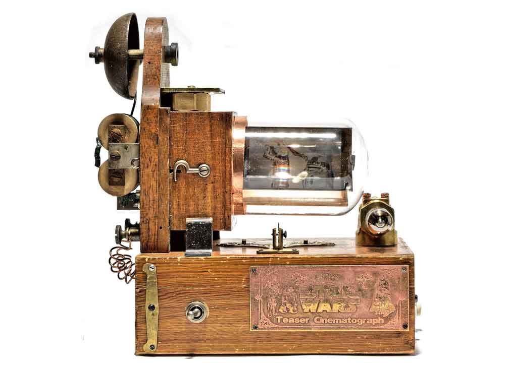 Das neueste Produkt des Schweizer Künstlers und Retrofuturisten Dan Tännler aka Dan Aetherman ist der "STAR WARS Teaser Cinematograph". Diese Maschine spielt alle Trailer der legendären STAR WARS Saga auf einem kleinen, sehr speziellen, LCD-Bildschirm ab.